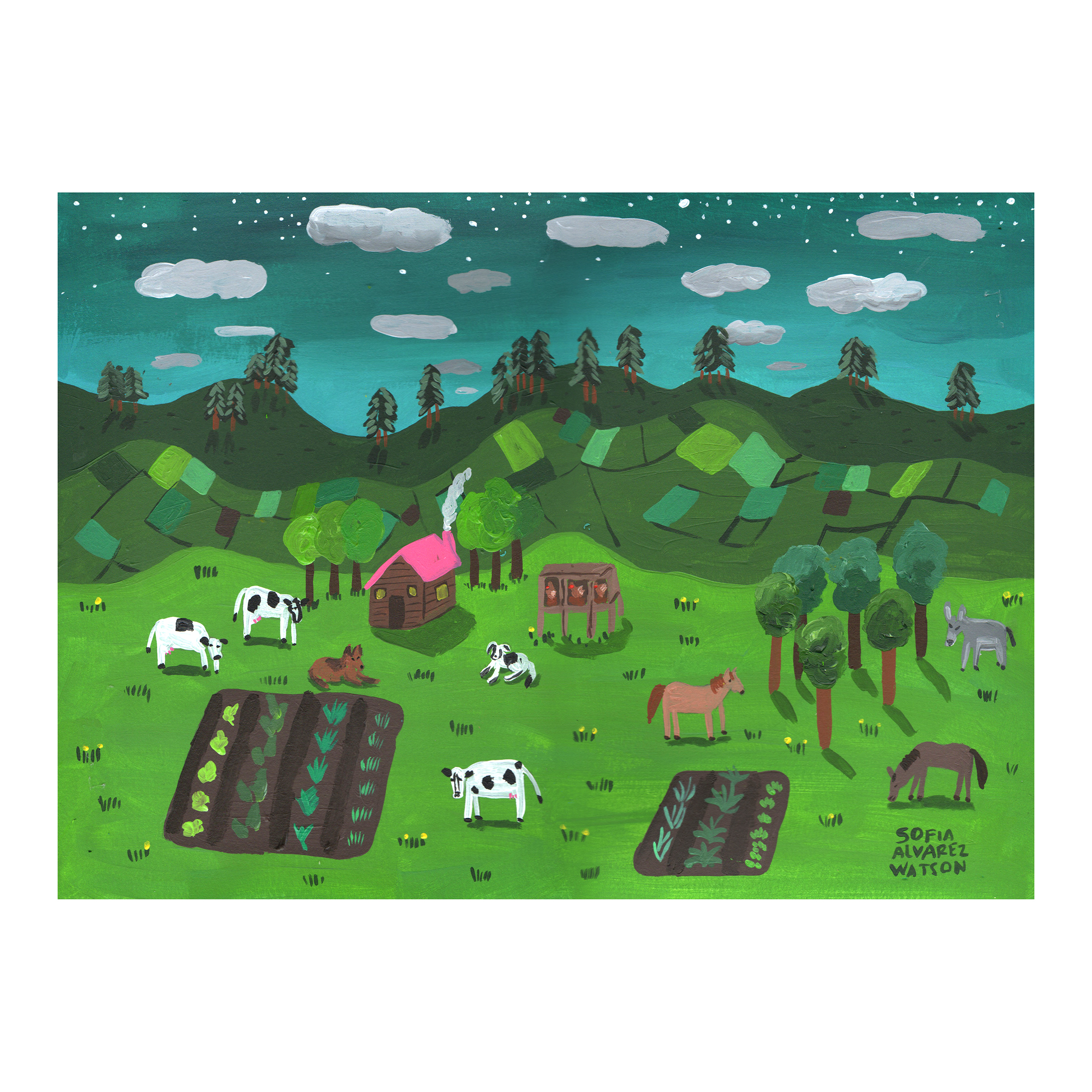 Soy pintora, dibujante, e historietista. Vivo en Buenos Aires Capital. Me gustan los árboles, las montañas y los animales. También los colores; el verde suele ser el color que más uso. He publicado dos novelas gráficas y un libro de pinturas.